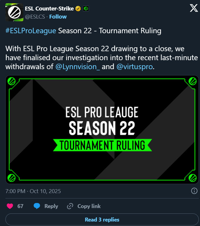不过,别以为LVG可以因为签证问题而得到某种“豁免”,实际上规定设定得清清楚楚,若没有令人信服的官方证明,ESL也不会给你们放生的机会。如果在未来的某个赛季,他们的排名足够高,有机会像飞上天一样获得邀请,那么这项处罚将在2026年IEM克拉科夫站如期而至。换句话说,LVG,不想太难堪,还是得认真把各项准备工作做好才行。